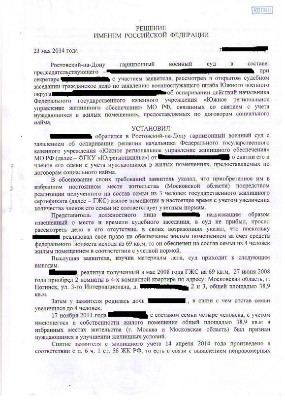 Военнослужащий, в 2009 году планировался к увольнению с военной службы, получил ГЖС, реализовал, приобрел жил. площадь в Моск. обл., Ногинск, 2 комн. в комун квартире, общ. жил. площ 38,9 кв.м. До увольнения дело не дошло, продолжил военную службу. Сейчас вновь попал под ОШМ, правда и выслуга уже более 20, но за этот период родилась дочь, и сейчас состав семьи 4 человека. В ДЖО меня приняли на учет в качестве нуждающегося в жил. пом. предост. по дог. соц. найма., с 17.11.11., даже распределили жильё.
