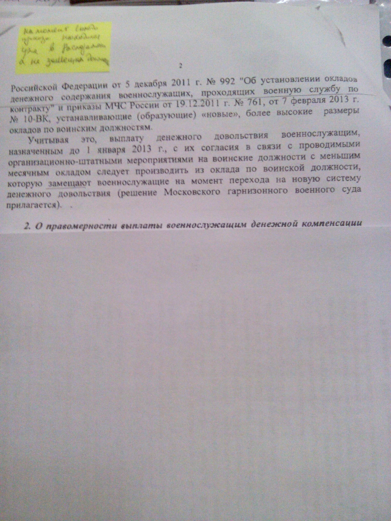 #3213Отлистай пару страниц.Уважаемые форумчане, добрый вечер. Уже два года, как уволен в запас из ВС РФ, а ЕРЦ МО РФ достало через суд с необоснованным обогащением. Подали на меня в гражданский суд исковое заявление о взыскании с меня денег в свою пользу, как неосновательное обогащение. С начало они удержали с меня деньги при увольнении. Я два суда у них выиграл, деньги они мне вернули. А теперь опять хотят забрать уже через суд. В качестве приложения к иску представили судебную практику по данной категории дел, естественно с положительными решениями в свою пользу. Роюсь в интернете и не могу найти решения судов, где бы им было отказано в удовлетворении их требований. У кого есть подборка, где им отказано в удовлетворении иска - прошу поделиться. Заседание суда 05.10.2015 года Заранее благодарен за оказанную помощь.