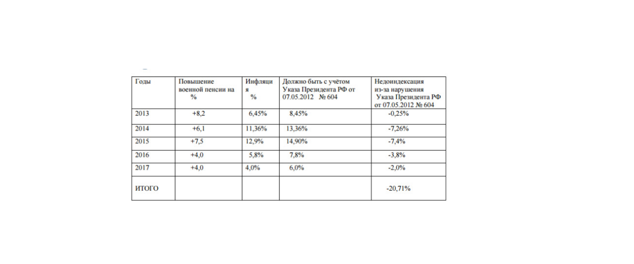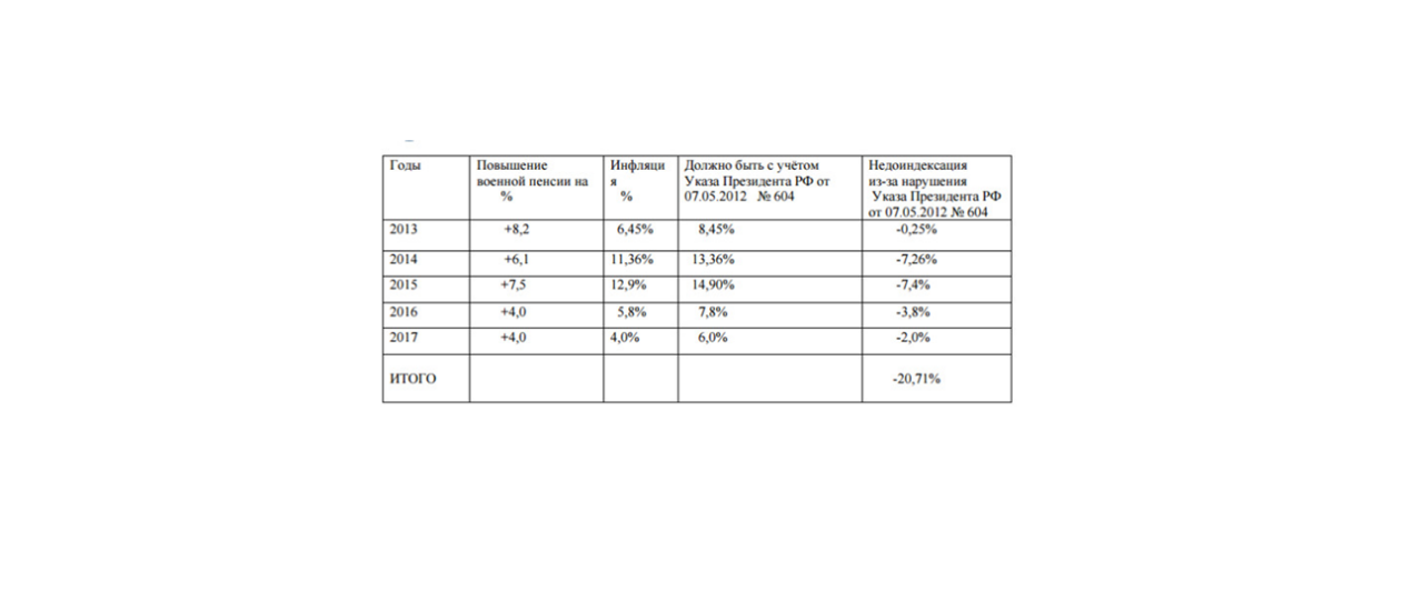 Читаю, на мой взгляд, полезные обращения гражданских организаций пенсионеров во властные структуры и испытываю какое -то чувство неудовлетворенности что-ли по поводу арифметических ошибок в представляемых расчетах. И в частности в о многих обращениях приводятся расчеты недоиндексации наших пенсий из-за несоблюдения Указа Президента №604 Вот ,например , одна таблица №3