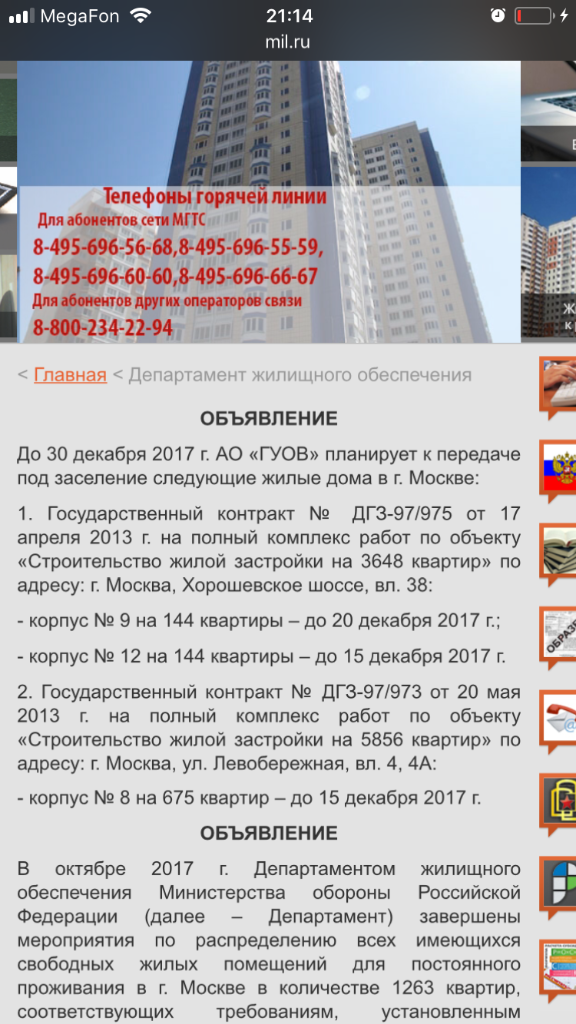 А на официальном сайте МО написано, что ДЖО все квартиры уже распределили. Эту информацию мне подтвердили и на горячей линии.