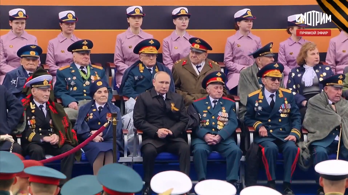 Ветеранов, которым трудно стоять, и Путин "не хочет ставить в неудобное положение", рядом не наблюдалось.