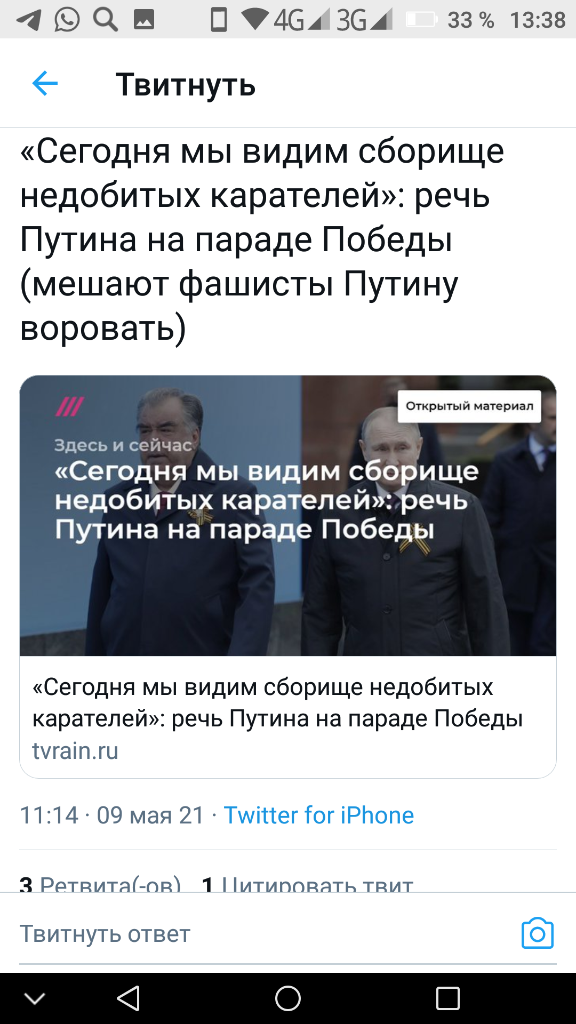 «Во всем мире главный лозунг победы над фашизмом — „Больше никогда“, и другого лозунга быть не может. Российское „Можем повторить“ — это ужасно. https://www.znak.com/2021-05-21/v_novos ... nya_pobedy