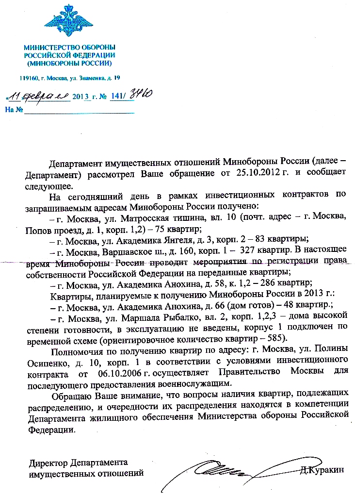 Наваливать надо на государство которое Вас заставляет заходить на этот форум каждый день в надежде увидеть информацию по квартире не первый год, вместо того чтоб заниматься работой или семьей. Я всего лишь высказал свое мнение что каждый сам делает свой выбор ехать куда то или нет, выполнять приказ или нет. А то у нас так и получается по жизни как по уставу. Исполнить сначала приказ "длинною в жизнь" мотание по гарнизонам а потом уже обсуждать и осуждать тех кто не ездил. Кто то должен ездить а кто то должен сидеть в Москве. Да жизнь она такая. Не все равны.Spirit,