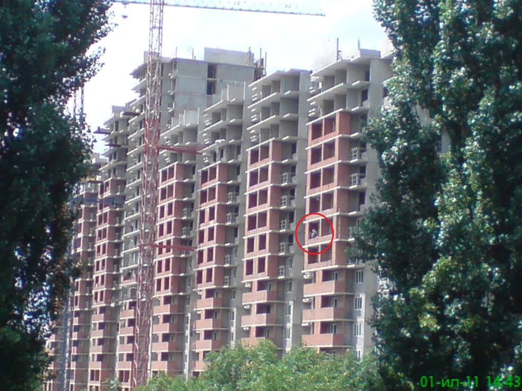 Мной замечена группа рабочих, болтающих на балконе (обозначил кругом)
