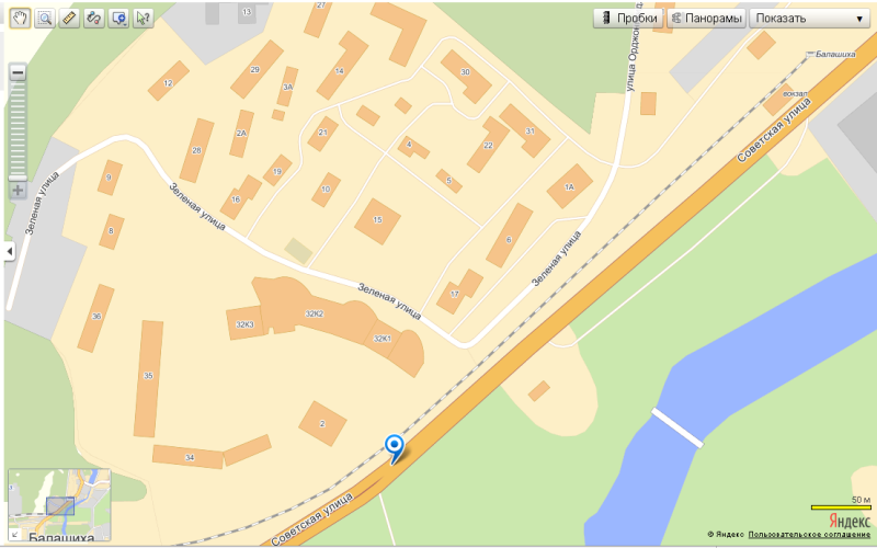 А я вот попытался найти через поисковик (я ведь бывший оператор) и вот, что вышло: Это одно и то же здание и один и тот же паспортный стол. По ул. Зелёная, 34, по ул. Советская, 34... В левом нижнем углу картинки. А ст. Балашиха вверху справа.г.Балашиха,ул.Советская,34(не пытайтесь искать через карты-поисковики-ничего не получится