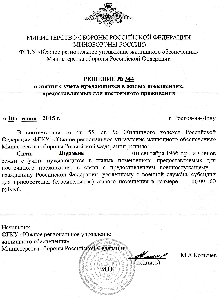 В соответствии со ст. 52 ЖК РФ, ст. 15 ФЗ "О статусе в/с", приказа МО РФ от 30 сентября 2010 г. № 1280 "О предоставлении военнослужащим ВС РФ жилых помещений по договору социального найма и служебных жилых помещений" на основании заявления и представленных документов принять на учет нуждающихся в жилых помещениях, предоставляемых по договору социального найма: