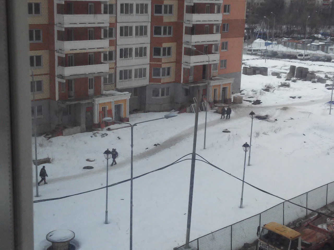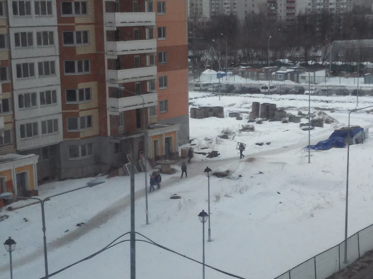 Если так и дальше будет "бурлить", то годков пять ждать окончания "бурления"! Максимально 8 строителей насчитал, остальные, видимо, внутри замаскировались. Может весна подействует на рост строительной активности, но приток обещанных денег, конечно, сильней бы оживил стройку.