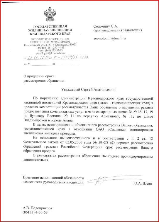 #3575Уважаемые, соседи! Вчера получил ответ 314 ВП по нашей коллективной жалобе. Копия ответа во вложенном файле. Вроде все готово для подачи коммунальных услуг. Кроме этого этой проблемой (по указанию администрации краснодарского края) занялся Отдел по муниципальному жилищному контролю УЖКХ МО г-к Анапа.