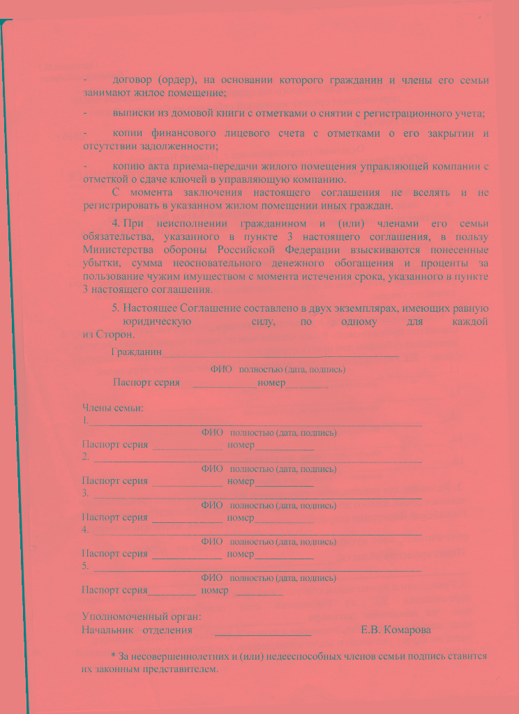 Специалисты ДЖО МО РФ (г.Москвы) примерный Образец составления такого Соглашения/Обязательства предложить отказались (мол, пишите в свободной форме). В известных мне НПА образца Соглашения/Обязательства (с "привязкой" к получению жил. субсидии) также не нашел.