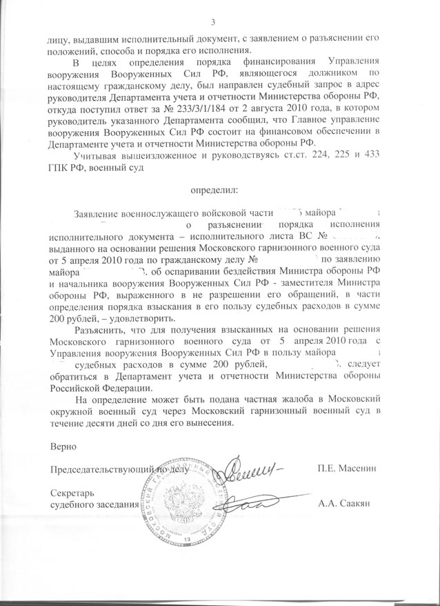 2. Приложить отказ к заявлению в суд об изменении порядка и способа исполнения. В заявлении указать ближайший вышестоящий орган военного управления – юрлицо, имеющий казначейский счёт…