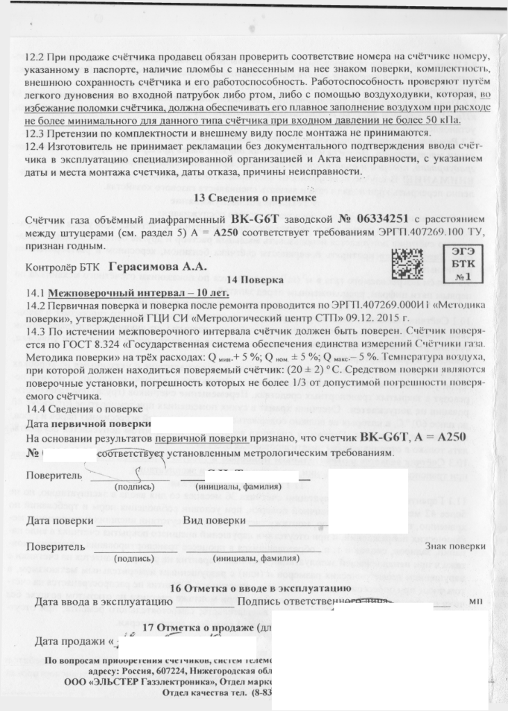 QR_BBPOST в паспорте счётчика есть запись "бытовой газовый счётчик в течении межповерочного периода не требует ТО"