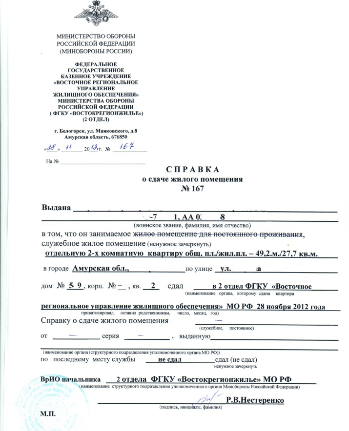 А где Ваша справка о сдаче предыдущего жилья (если оно предоставлялось) или училищная (если всю службу снимали жильё или жили в общагах)?требуют справку о сдаче комнаты в общежитии.