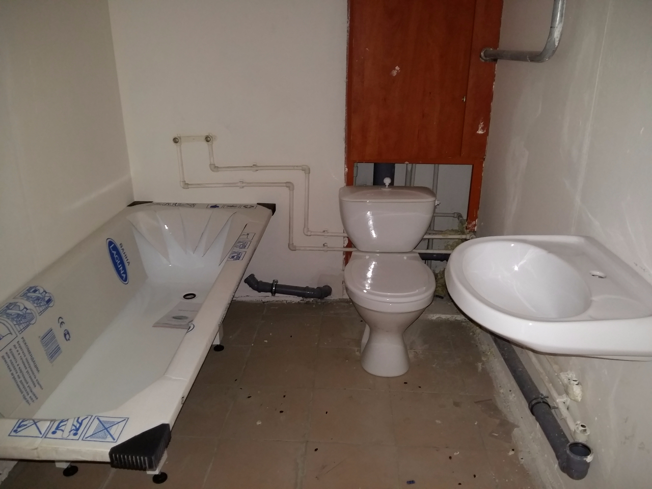 #36350Заходил в 7 подъезд, там вся сантехника установлена. А также розетки, выключатели, звонки, подоконники. В квартирах очень тепло. Работы идут. В 1 подъезде работали сантехники. Занимаются канализационными трубами d50 для раковин и ванн. В подъезде увидел неармированные трубы 20 диаметра. (менять однозначно). Перепад по стяжке в пределах 3-4 см. Запас материала имеется: обои как мегарулон ТБ, керамогранит, клей Основит АС 10, штукатурка.Кат73, ванные и унитазы есть в 9-м?