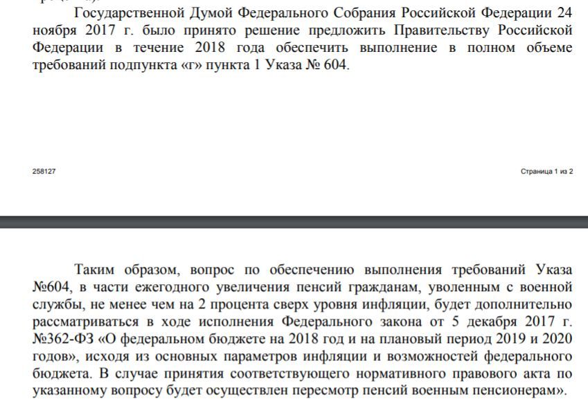 Таким образов денежное довольствие действующих военнослужащих должно увеличиваться ежегодно в соответствии с ростом инфляцией. Автоматические пересматривается пенсия, т.к. растут оклады военнослужащих. Но гражданам, проходившим военную службу пенсии увеличиваются не только на рост инфляции, но и + "плюс" 2 (два % процента). Старший так сказал в своем указе № 604.