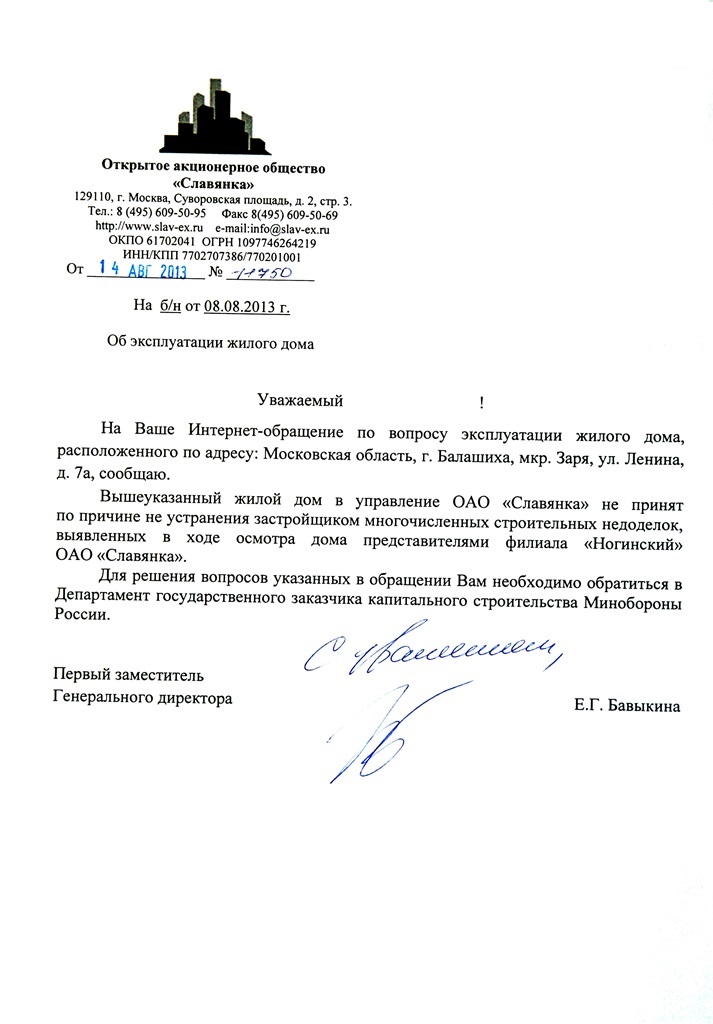 Сегодня были в Славянке. Получили справку о том, что по состоянию на 26.08.2013 дом не сдан в эксплуатацию (для предоставления в в/ч). Если есть желающие, могу выложить скан (справка не именная).