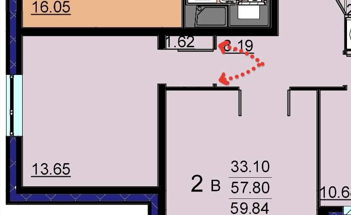 2. непонятно зачем сделанную перегородку с дверью перед входом в маленькую комнату: , так как там идеально встанет нормальный длинный шкаф-купе.