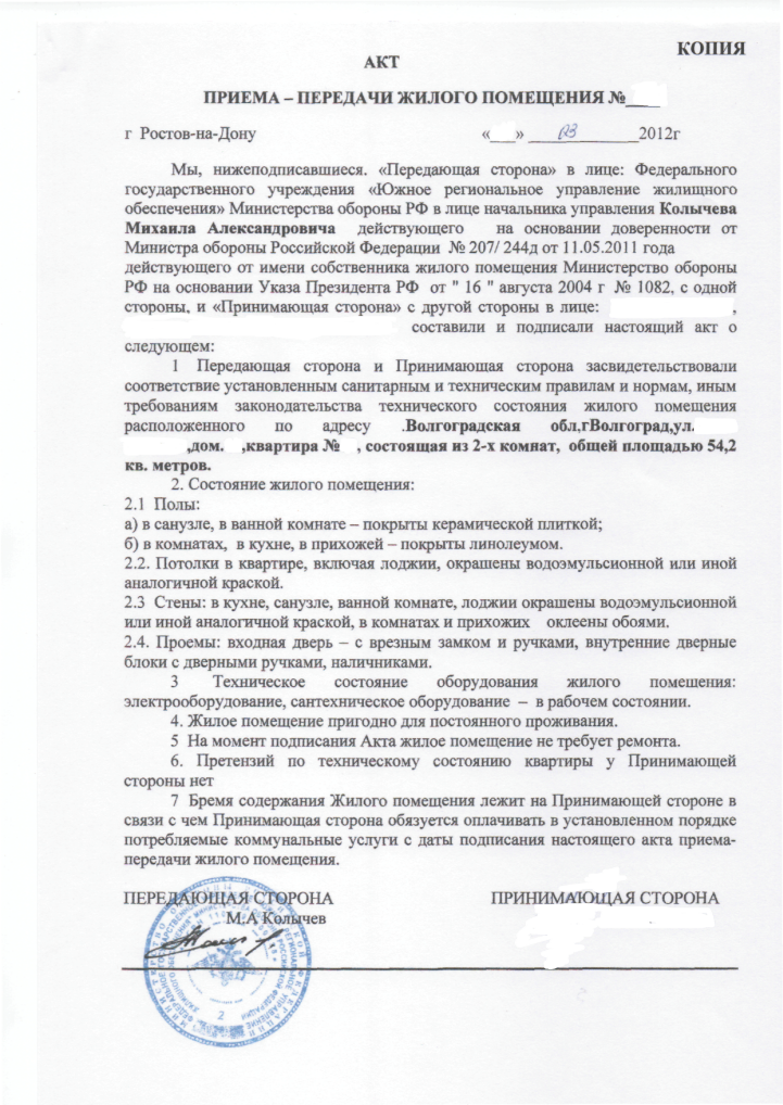 (кстати акт составляется в 3 экз, один остается в РУЖО, а 2 отдают Вам на руки)