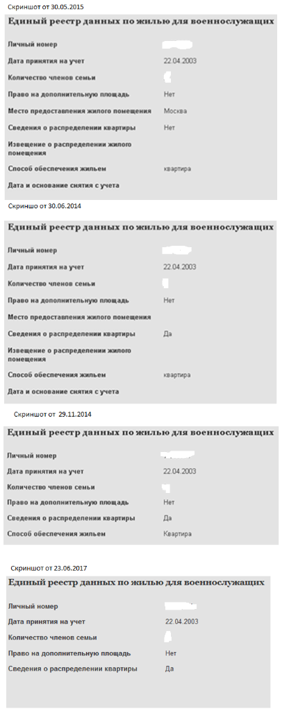 #39328В общем смысле ( имхо)- да ( но данные с официального сайта mil.ru, об "ознакомительном" характере данных нет- ни слова (ссылки), вход в реестр только через личный номер!), а с точки зрения законодательства и судопроизводства есть понятие относимости доказательств...(В силу ч. 1 ст. 71 ГПК РФ суд будет считать доказательствами любые документы и материалы. Причем, не так важно, выполнены ли они в "цифре" или в "графике", получены ли по факсимильной, электронной или другой связи. Главное, - чтобы они позволяли установить достоверность документа!) Фотофиксацию- камеры ГИБДД, запись видеорегистратора -тоже стали учитывать...Главное скриншот страницы не обрезать!( сайт, ссылка, страница, время и т. п.)Скрин ничего имхо не дает. Они говорят, что это ознакомительные данные, а окончательные получите после проверки непсредственно перед вселением. Так что...