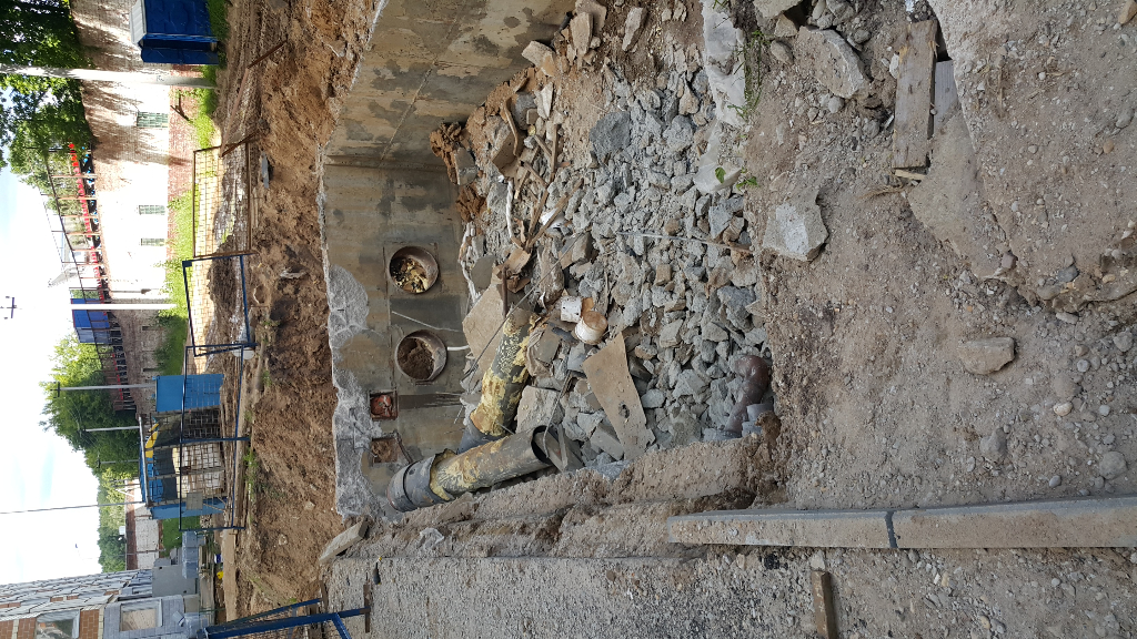 -Тепловой узел возле 9-го корпуса..трубы убрали, начали рушить сам узел.. ждем куда будут копать.