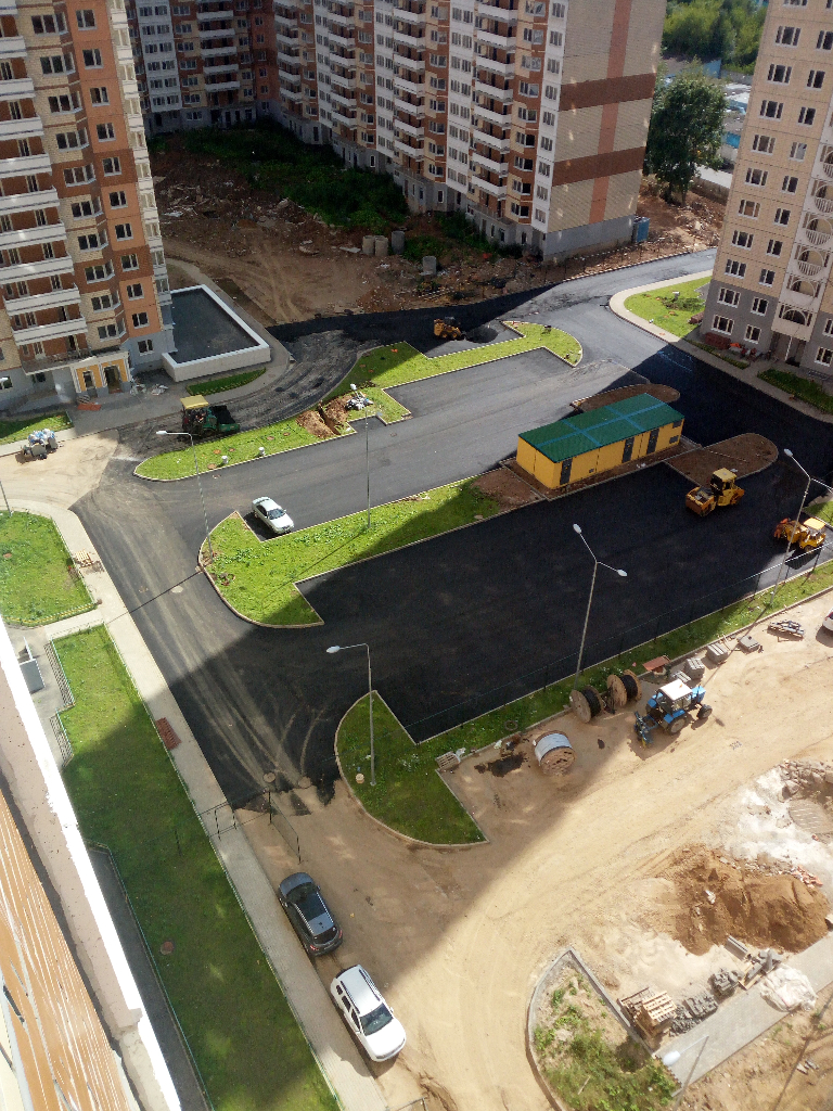 Девятого мая второй корпус сдали, а вот и асфальт! Наверно и с девятым корпусом будет так же.