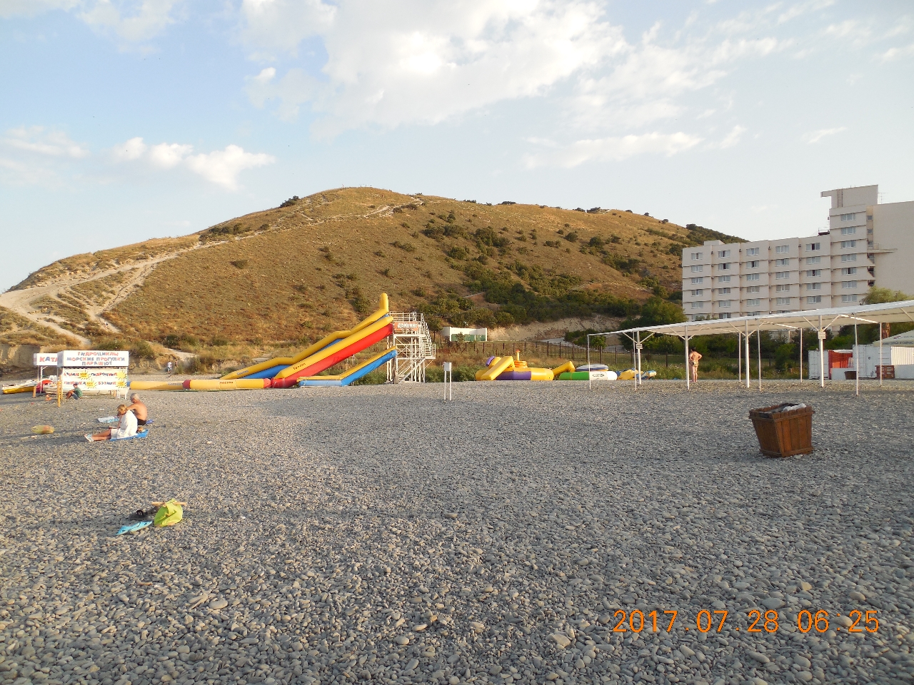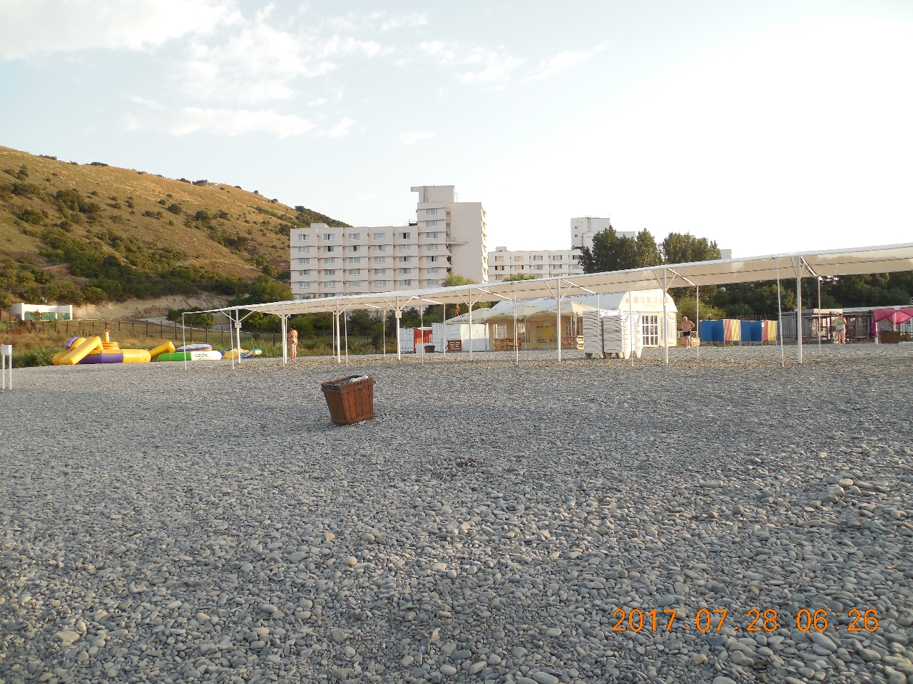 Место, фото которого Вы сюда выставили, выглядит теперь иначе. Навесы остались, но никаких дорожек из деревянных настилов нет. Кругом асфальт. и все это место находится на территории санатори, а не на побережье, до которого150 метров еще идти надо. Это Вы называете пляжем? Почему бы тогда не назвать пляжем любой другой участок земли санатория, где бы Вы смогли на газоне разместить свой лежак? Под деревьями у моста №1 полно было таких загорающих на лежаках, расставленных прямо на зеленой траве газонов. Потом это дело правда пресекли, ночью все лежаки с территории санатория собрали в одну кучу под навесы и сквозь ножки всех лежаков протянули стальные тонкие тросики с замками.