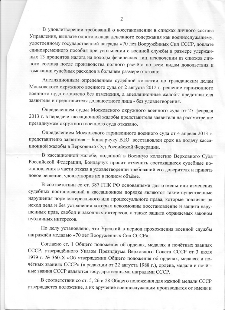 Вышеперечисленное считаю имеет место у меня, так как не выплачен 1 ОДС за 70 лет ВС. Наконец то Верховный суд это сегодня признал. НО ВОсстанавливать на службе не стал не смотря на мои письменные заявления???