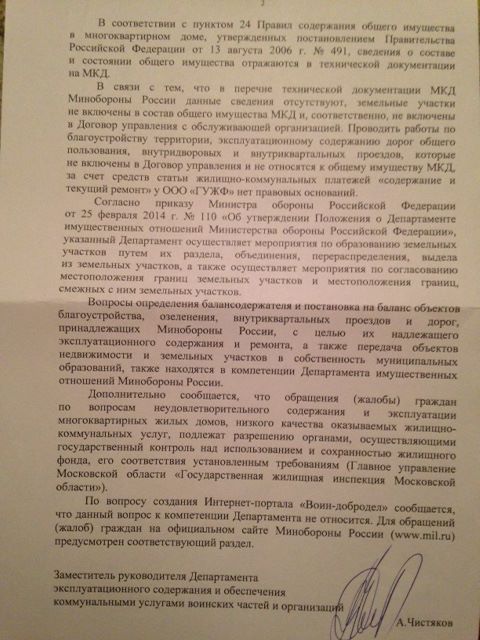 #447Наконец-то они хоть что-то поняли,что не их это дело!Минобороны решило отказаться от управление многоквартирными домами через свои компании.