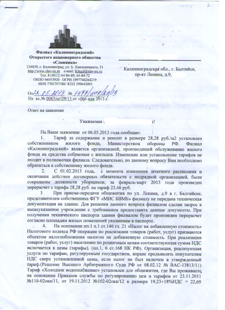 11 апреля 2011 года он направил ответчику заявление о рассмотрении протокола разногласий к проекту Договора на управление, содержание и ремонт многоквартирного дома.