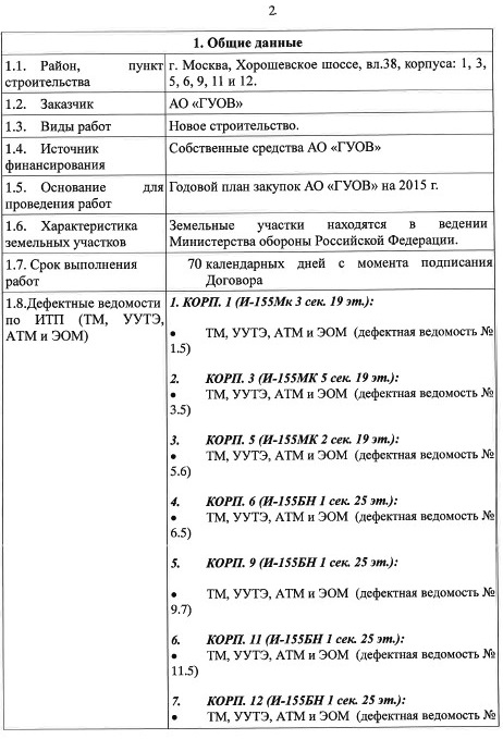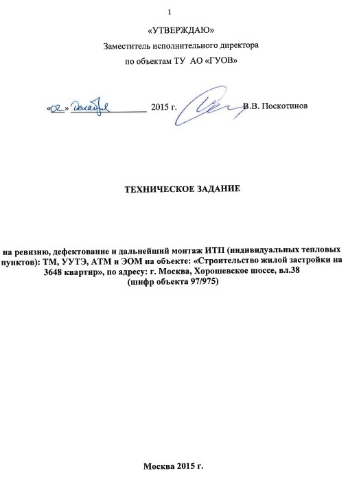 "ревизия, дефектование и дальнейший монтаж ИТП (индивидуальных тепловых пунктов): ТМ, УУТЭ, АТМ и ЭОМ на объекте: «Строительство жилой застройки на 3648 квартир», по адресу: г. Москва, Хорошевское шоссе, вл.38, (шифр 97/975)