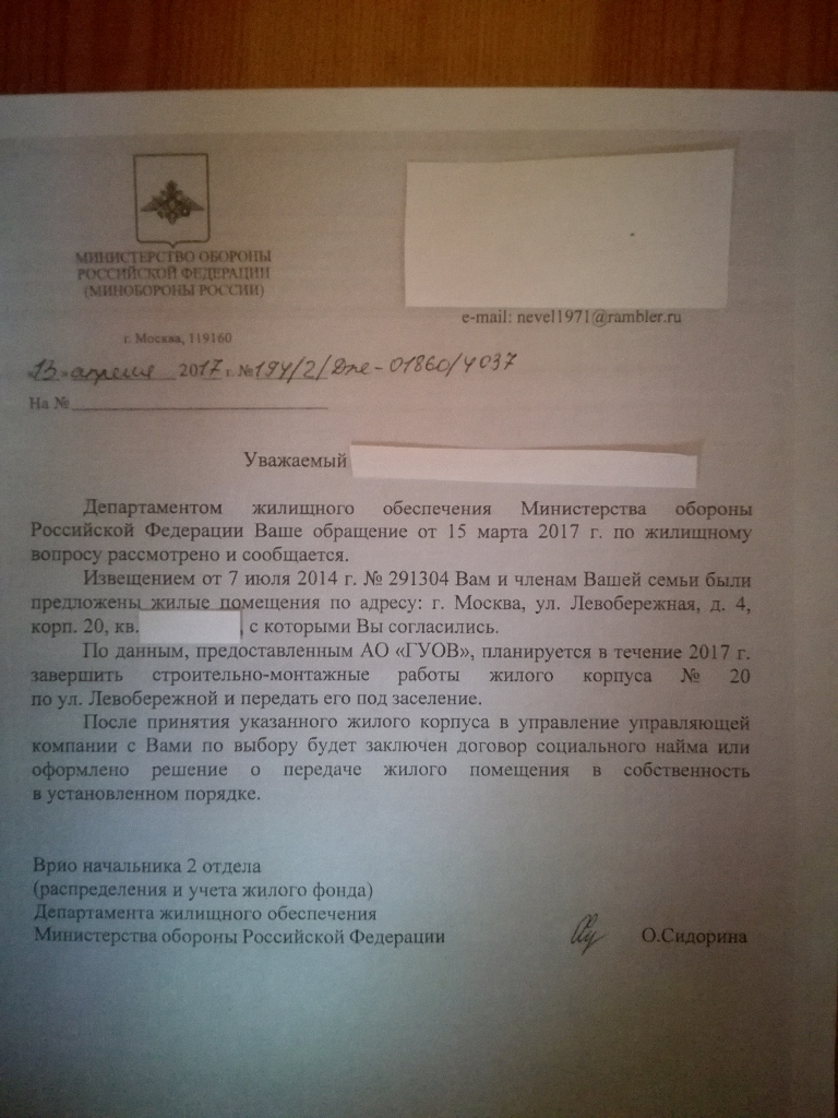 #42482Конечно же, "не виноваты". Это не обязательство, если не указана дата, до которой МО обязуется оформить право собственности. И ребята из так называемого министерства обороны этим пользуются. Я также проиграл все суды, когда пытался их - министра и директора Джо -заставить совершить действия по обеспечению меня жильем. Ответ был такой - в законе не предусмотрены сроки, в течение которых государство обязуется предоставить жилье по избранному месту жительства (бездействие министра Шойгу и директора Джо, как и всегда, оставили за сербами) И в конституционном суде отписались, типа, мы не депутаты и законы не должны принимать (я в своей жалобе просил дать оценку - соответствует ли Конституции положение, при котором сроки в законе не указаны). Но это нормальная практика для всех путинских судов. Теперь, имея на руках предварительное извещение, второй раз обратиться в суд уже не смогу - сразу откажут по преюдиции. Они теперь спокойно лет десять могут достраивать, а то и бесконечно долго, дольше жизни. И всё по-закону, в котором сроки не указаны. Но недолго этой власти сидеть на нашей шее. Таково моё мнение.