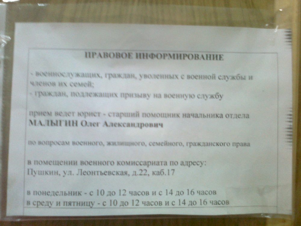 Военный Комиссариат Санкт-Петербурга отдел Пушкинского района