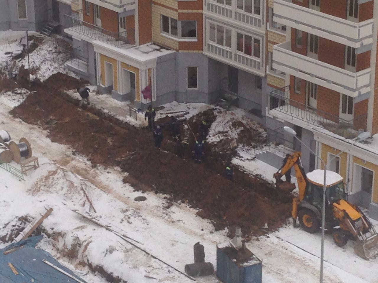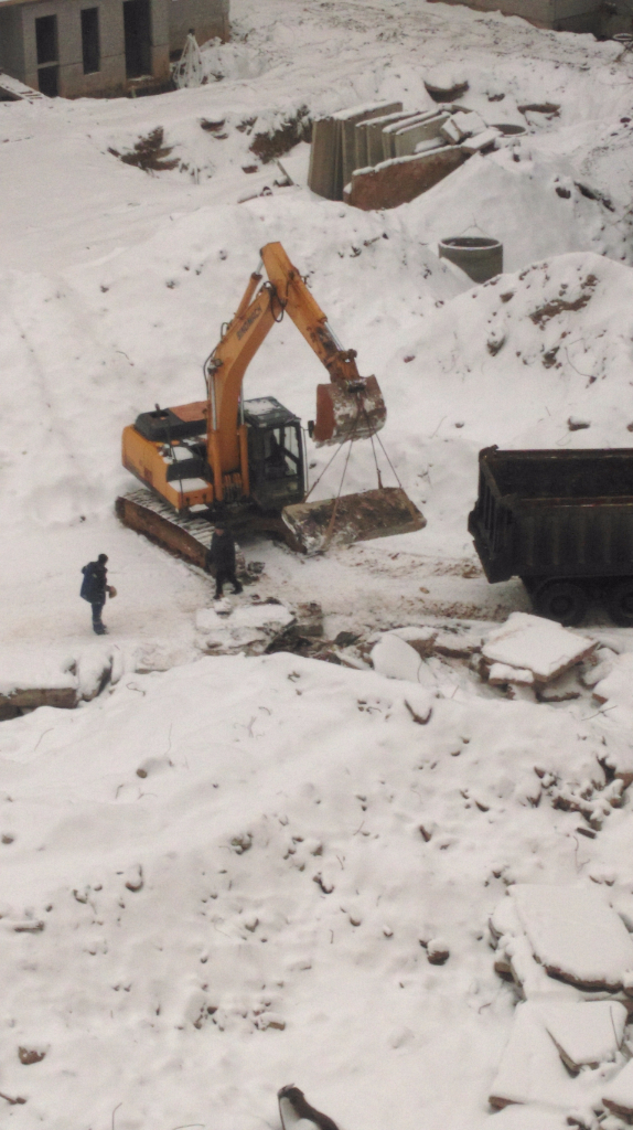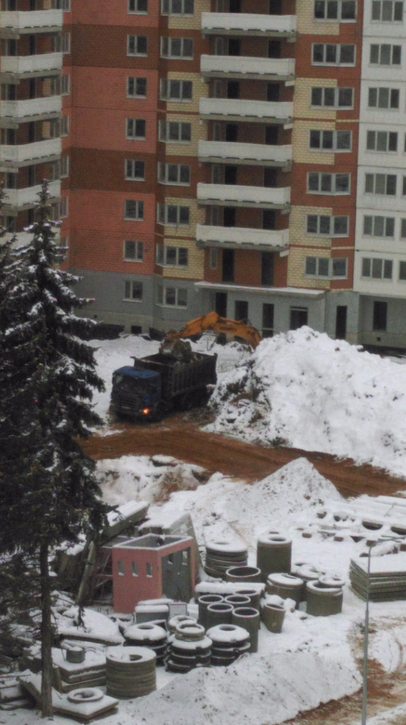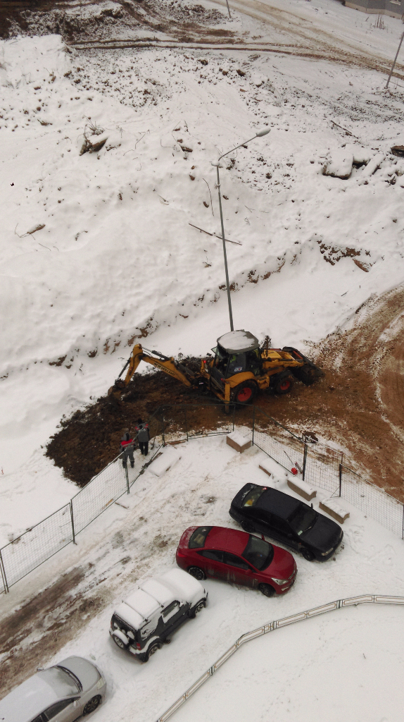 Между 4к и 7к работала бригада с арматурой, у 7к и 8 к вывозили грунт, на углу 8к ближе к 5к работали рядом с траншеей, где проложены кабели электричества.