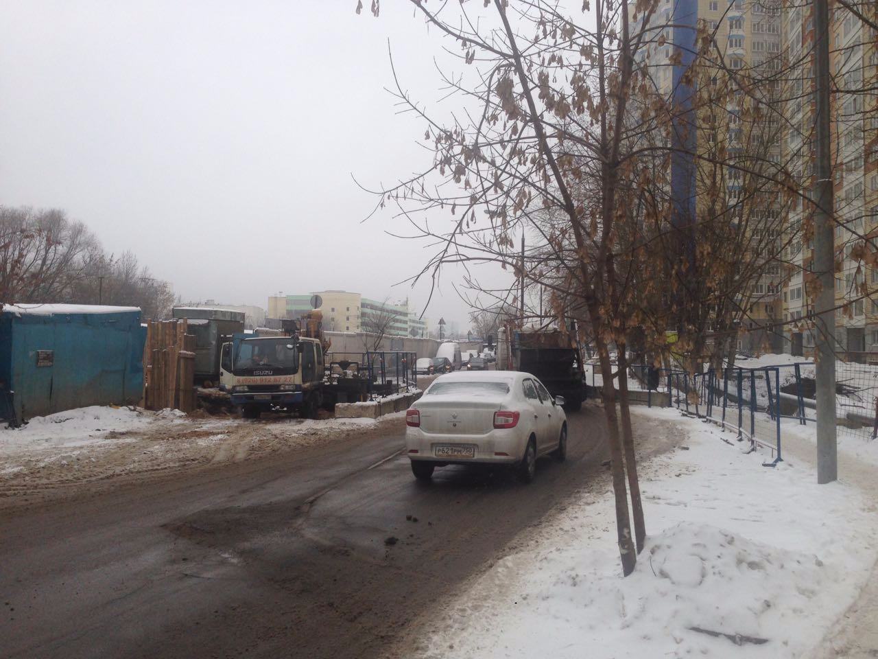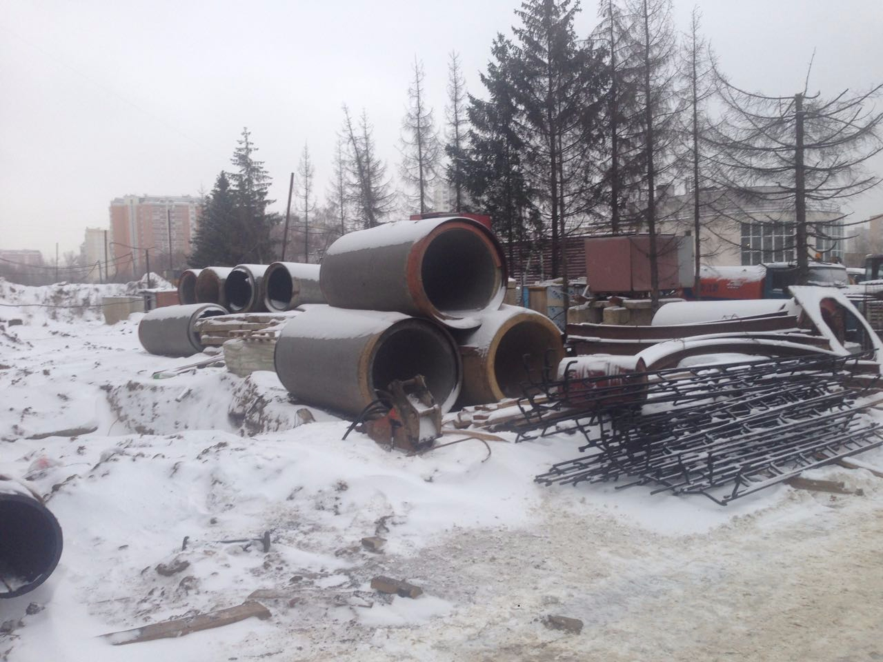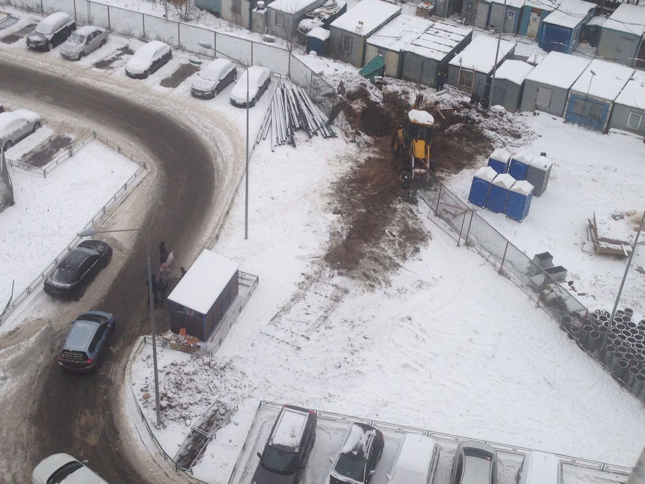 Между 4к и 7к работала бригада с арматурой, у 7к и 8 к вывозили грунт, на углу 8к ближе к 5к работали рядом с траншеей, где проложены кабели электричества.
