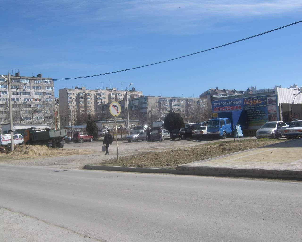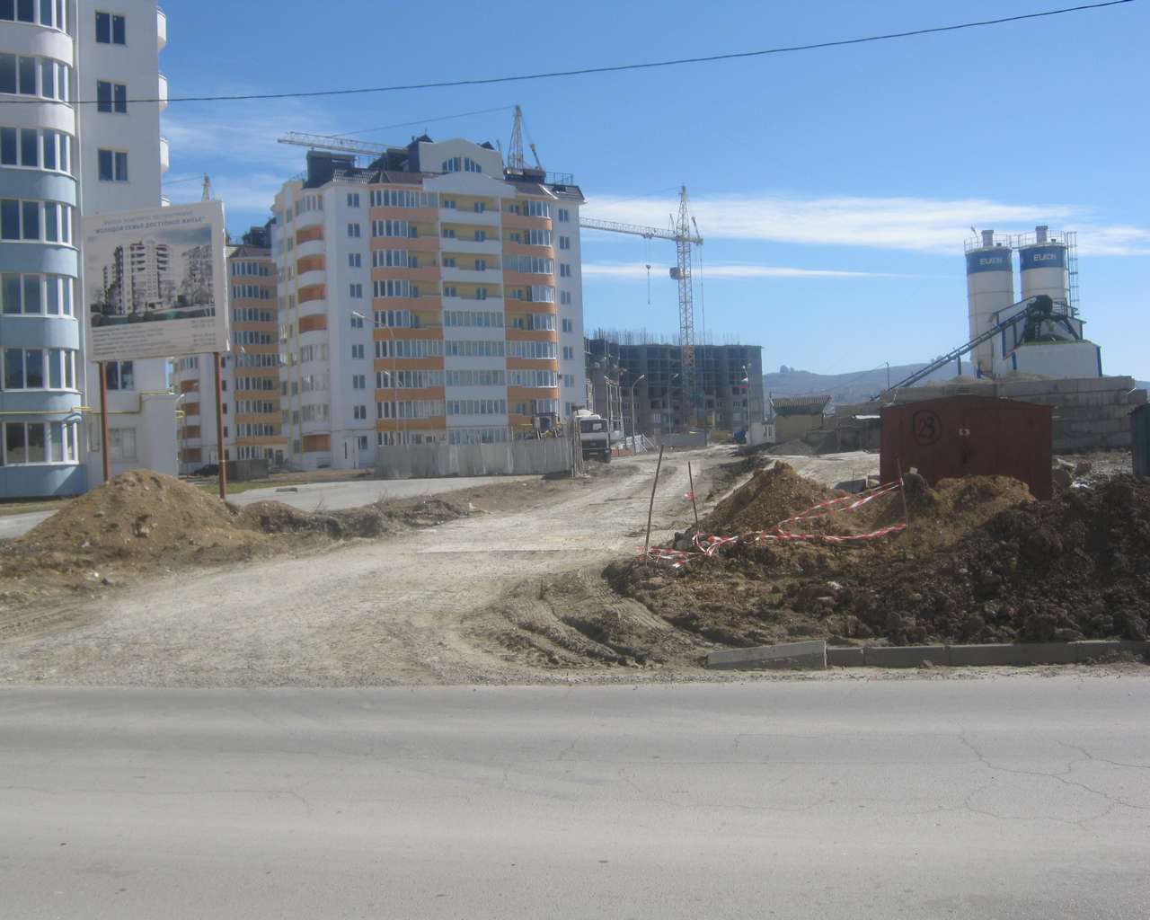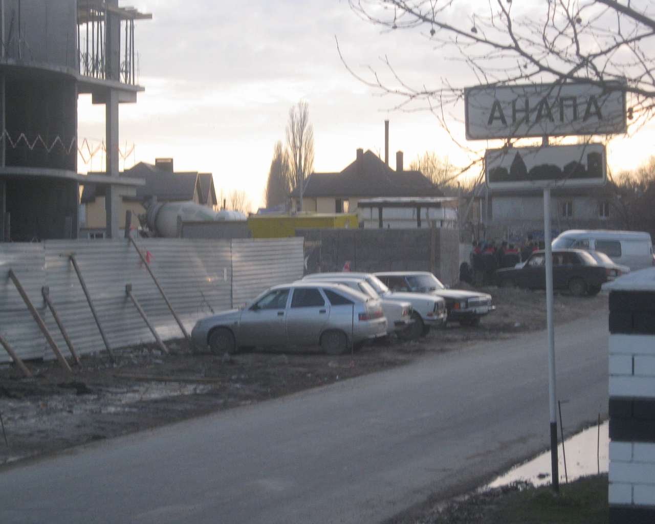 Добавлено спустя 1 минуту 25 секунд: Теперь стоим спиной к шоссе. Слева от нас строительство наших домов, справа заправка и знак въезда в Анапу.