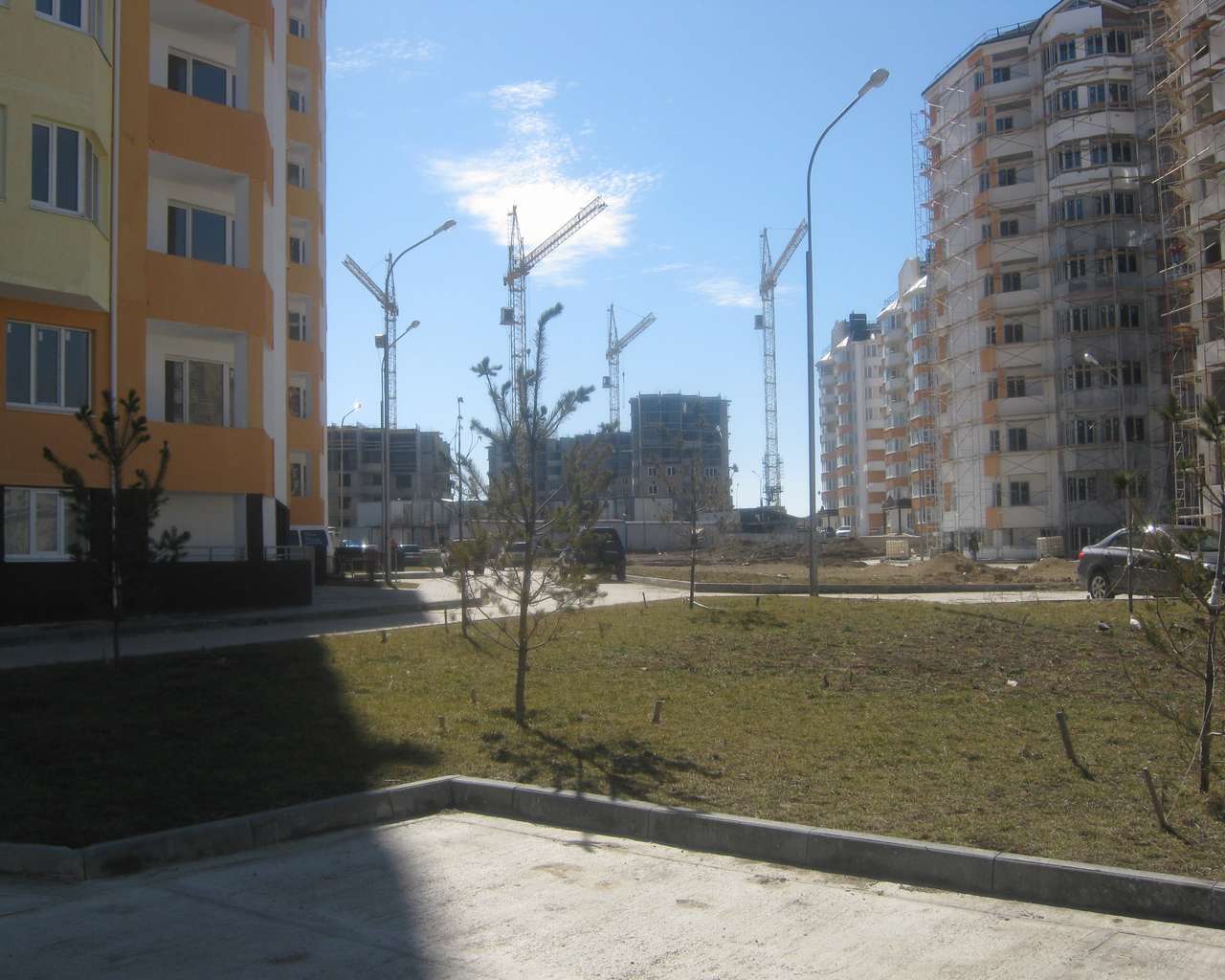 Добавлено спустя 1 минуту 42 секунды: Это общий вид между электродомом 23 слева и Крылова 17-ми справа. Насыпаны клумбы и тротуары, въезды заасфальтированы