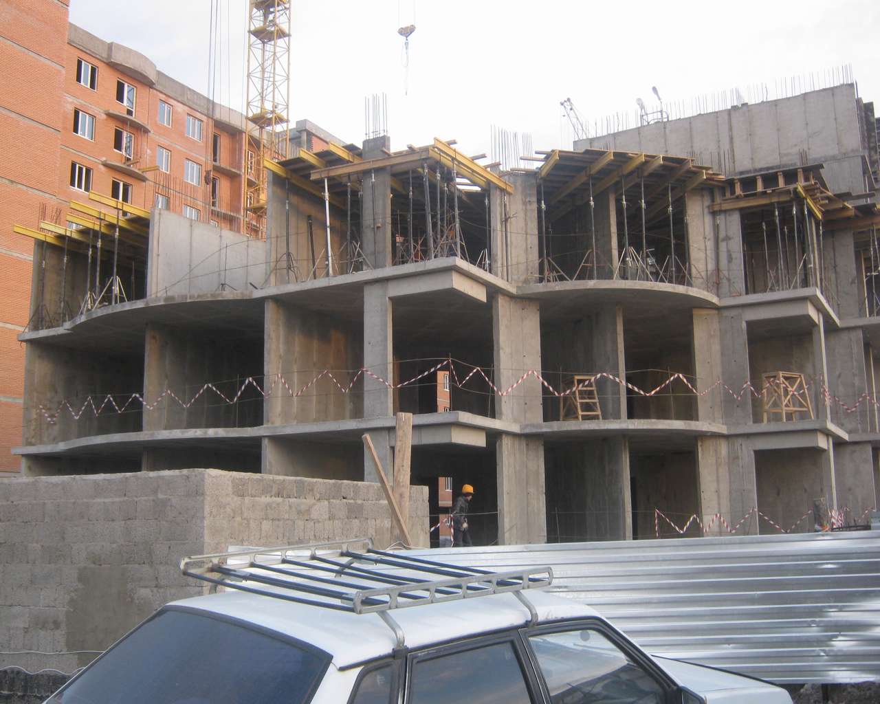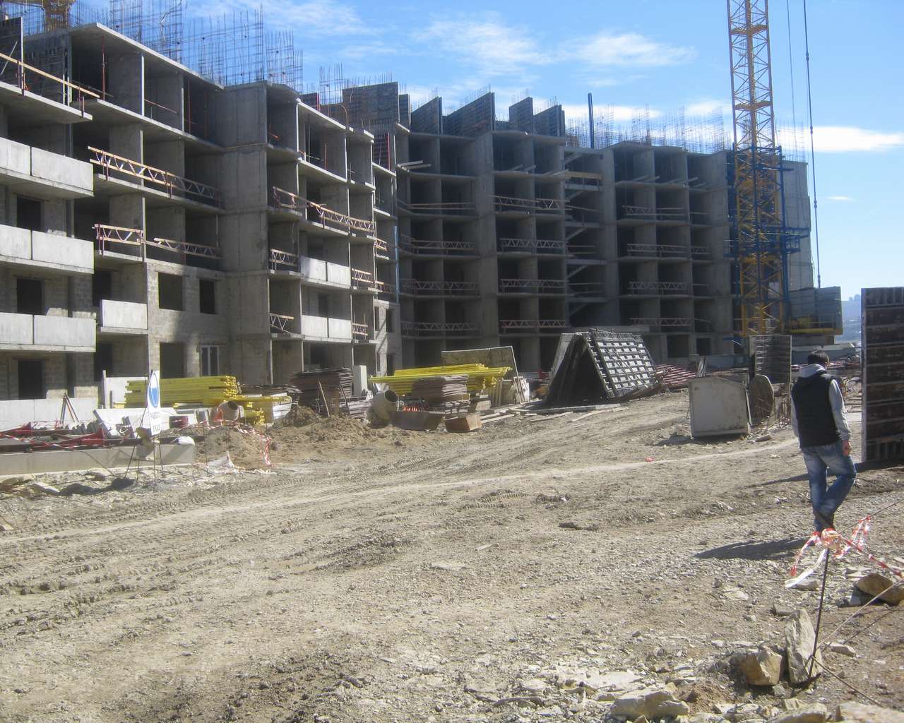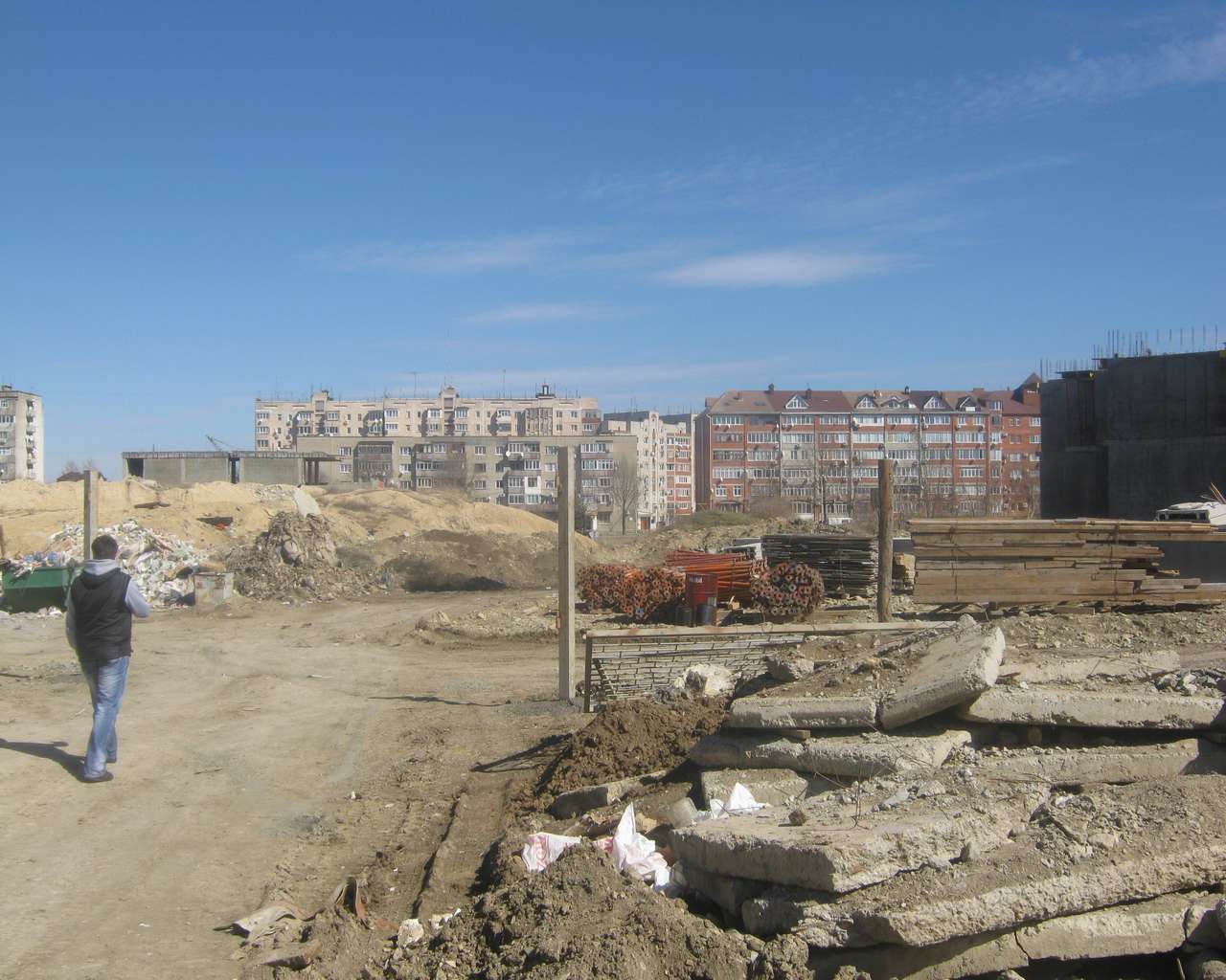 Добавлено спустя 2 минуты 16 секунд: Это - очень доброжелательный работник стройки. Послал нас... к вышестоящему начальству, которого уже не было...Зато здесь видно, какие крошечные балкончики будут у этих домов - полуовальчики