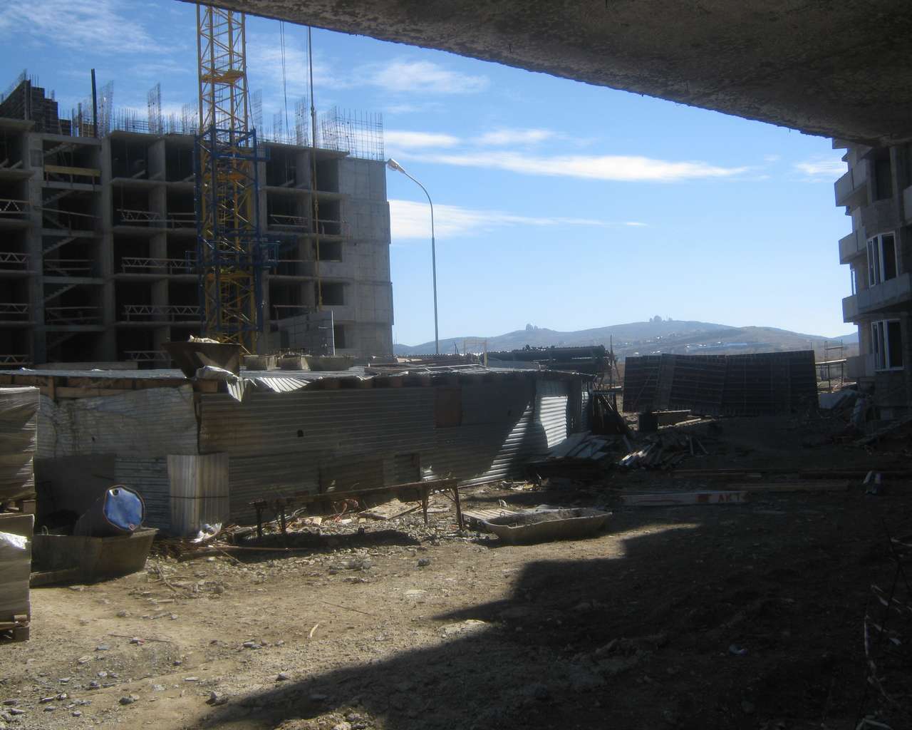 Добавлено спустя 2 минуты 44 секунды: Это дома справа от наших бумерангов. В проеме между двумя слева видна наша стройка