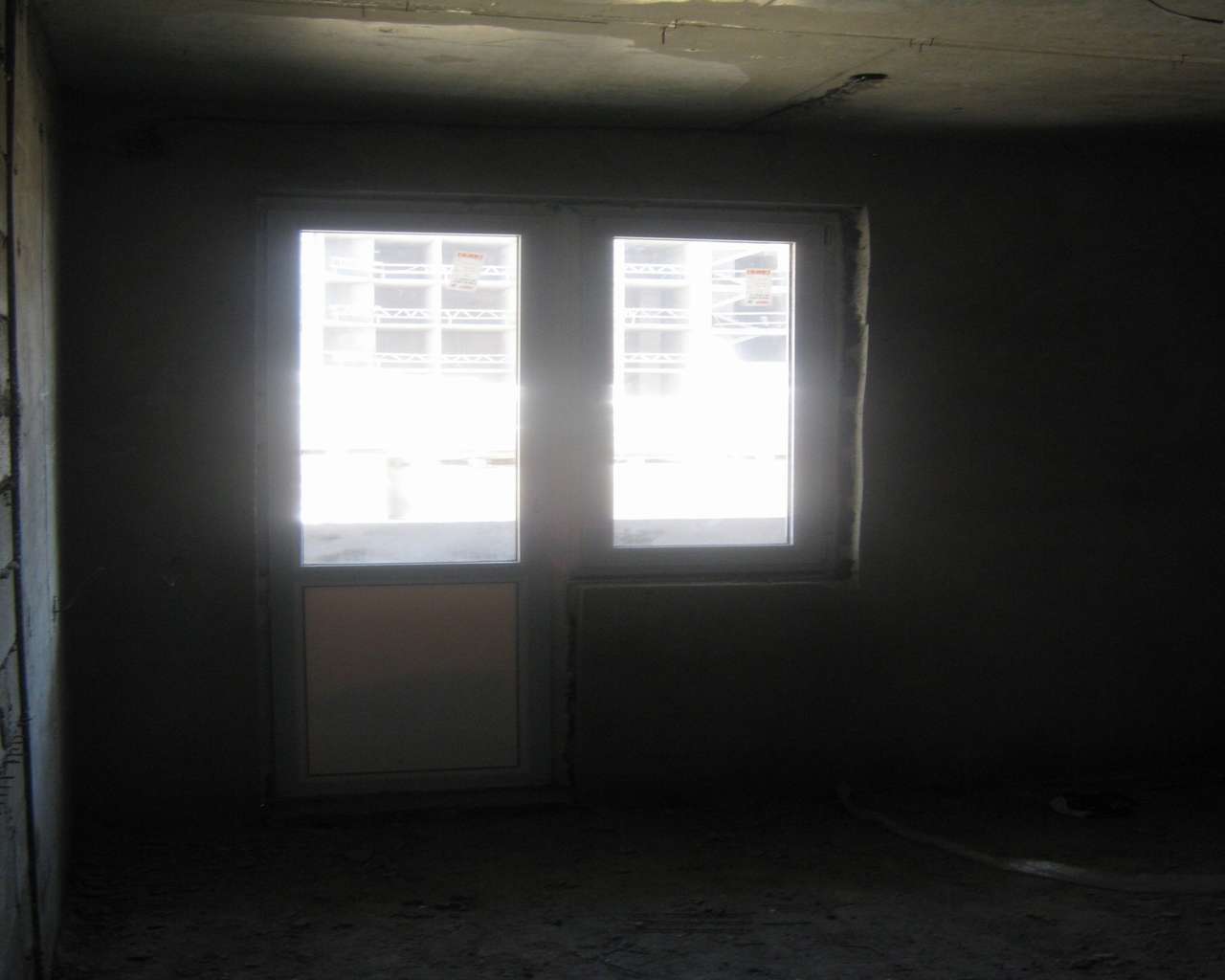 Добавлено спустя 1 минуту 34 секунды: Это вид внутри дома. Гостиная в 2х-комнатной квартире на 1 этаже. Пластиковые окна уже стоят.Дверей нет.