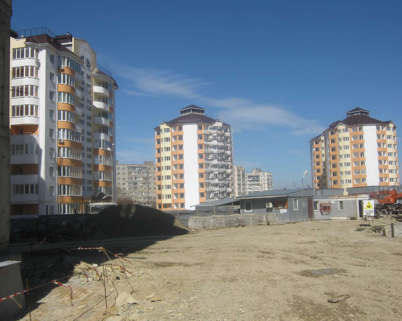 Добавлено спустя 2 минуты 37 секунд: И вот за ограждением - желанный загадочный объект под кодом "межсанаторный проезд, 20". Это строительный номер. Далее номера будут присвоены по приемке в эксплуатацию домов. Вот эти оранжевые симпатичненькие двухэтажки и есть Ваши домики у моря...