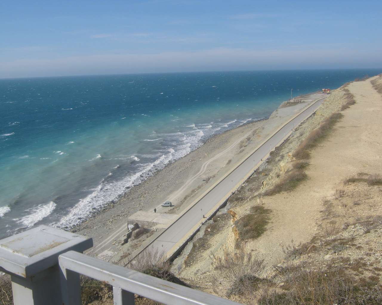 Добавлено спустя 2 минуты 24 секунды: Сразу за Ореховой рощей - море. Всего от наших домов метров 500. Только спуститься здесь невозможно. Видите, на снимке справа есть спуск - съезд для авто. Нужно пройти приблизительно 1000 м до него