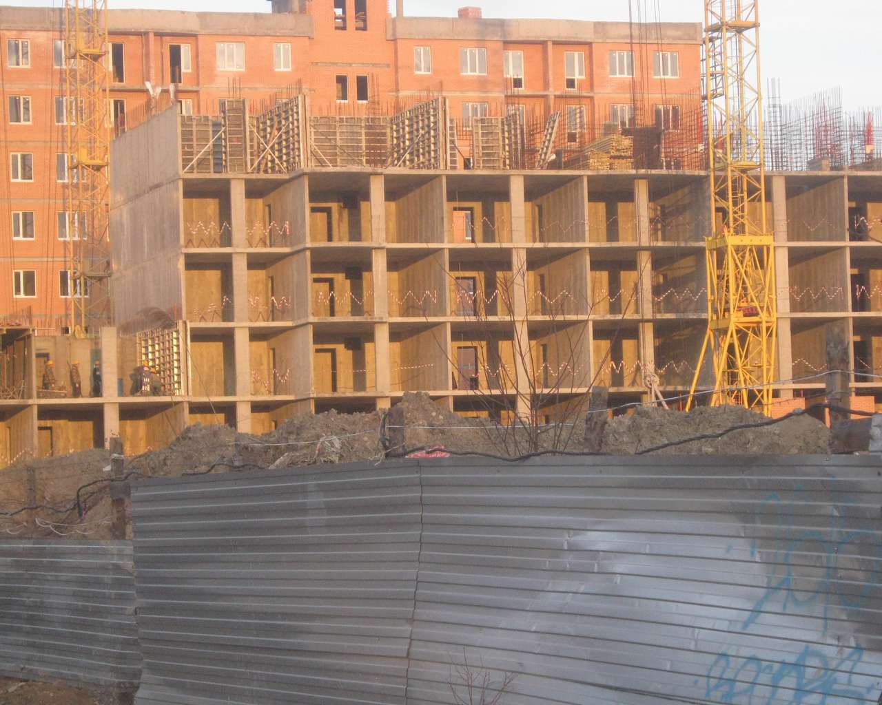 Добавлено спустя 3 минуты 44 секунды: В метрах 50 от увиденных вами коттеджей строится многоэтажка. Технология та же - монолит. Только сверху утепление кирпичом. Коттеджи стоят справа перед этим снимком, параллельно строящимся 9-ти-этажкам