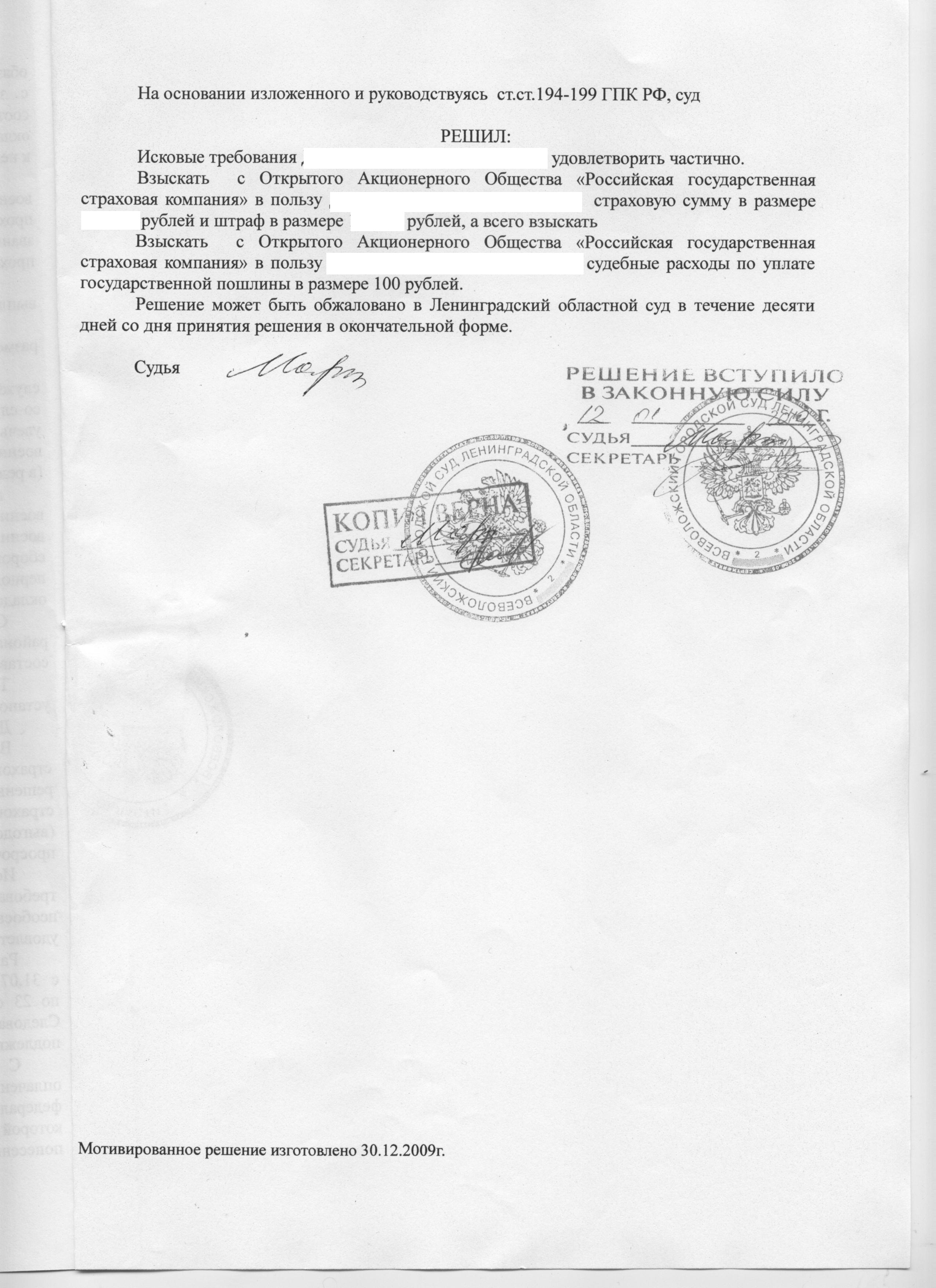 вступил в законную силу 28.01.20010, исполнительный лист выдан 26.02.20010