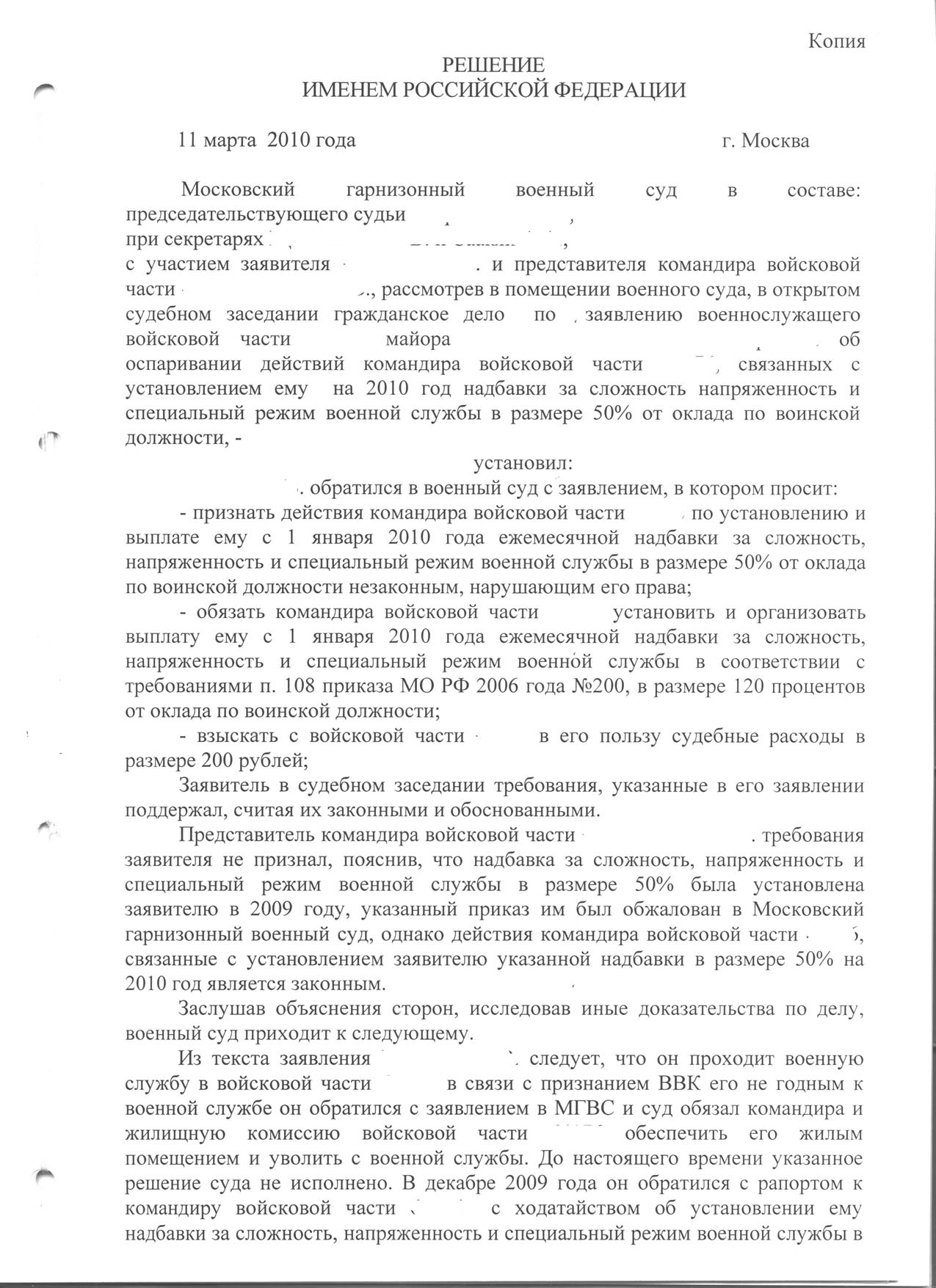 3. Обязать командира войсковой части ххххх пересчитать и выплатить мне надбавку за сложность, напряжённость и специальный режим военной службы с 1 января 2010 года в размере, установленном в приказе командира войсковой части ххххх № 270 от 15.10.2009 года.
