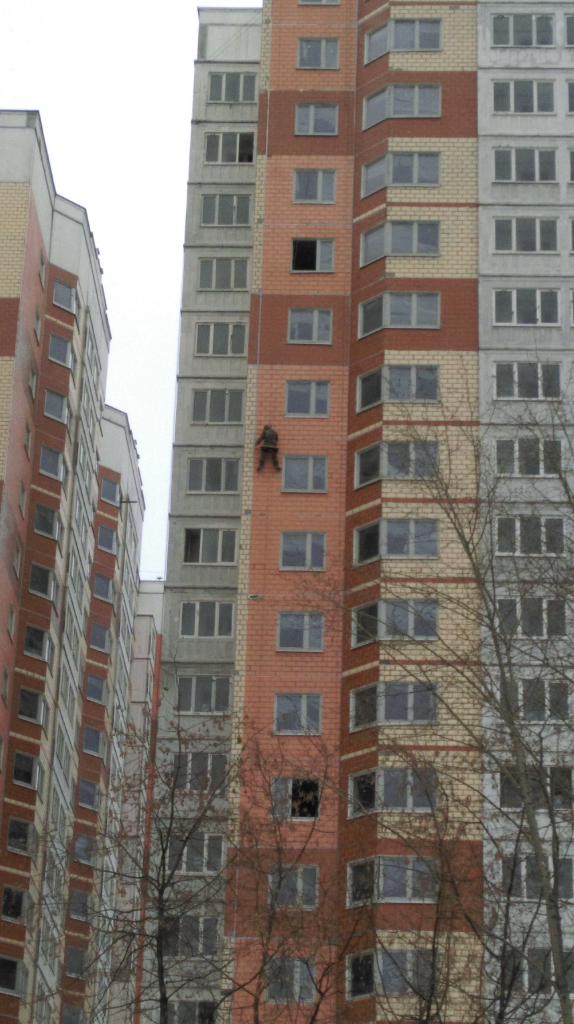 19к работал альпинист, корпус на вид еще страшненький – на 2ом этаже нет полностью оконного проема с рамами, много окон открыто.
