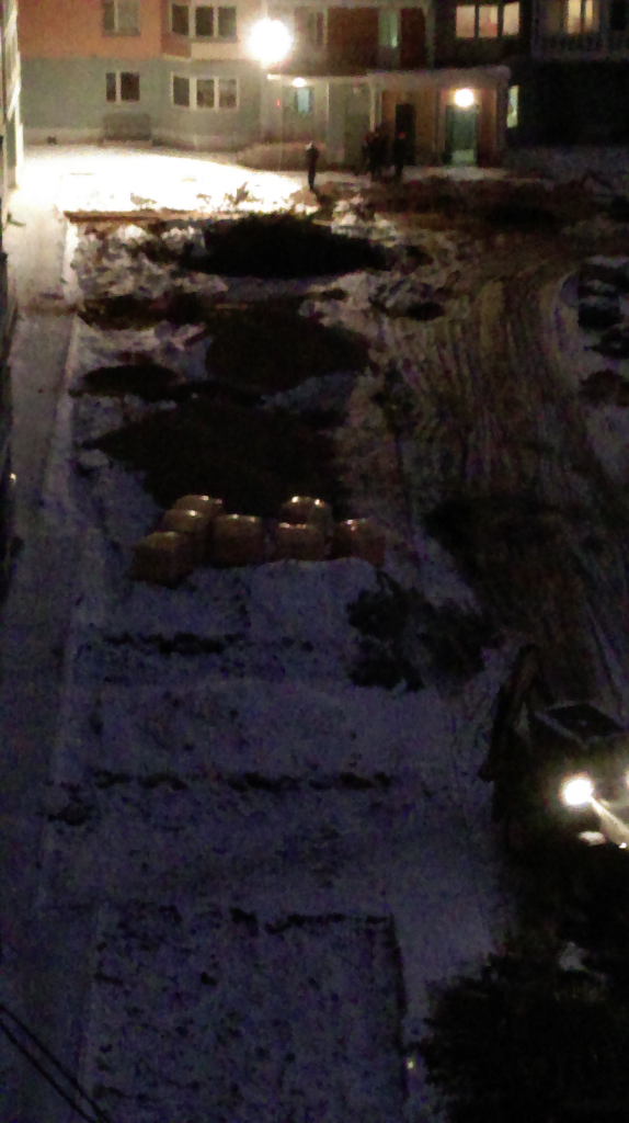 Пошел в 10к выведать обстановку, поговорить с управленцами, сколько по времени МОЭКовская «песочница» будет мозолить глаза. Сообщили, почти официально, что ГУОВ МОЭКу проплатил все мани, взамен МОЭК обещался закончить работы до начала отопительного сезона, но обещать – не значит жениться.