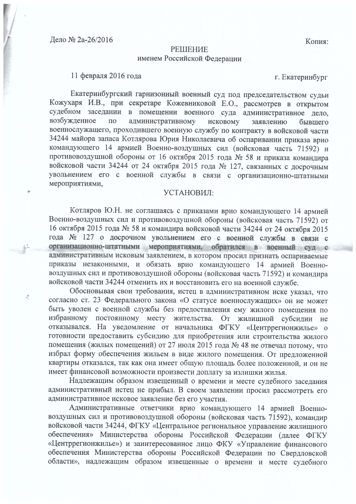 #4607Даже, если суд примет не мою сторону, я успею дать ответ в ДЖО, 90 дней хватит наверное. Вот только с заявлением засада. На основании решения 2-х судов в пользу воинов заявление составить можно. Если кто может помочь с заявлением буду благодарен.