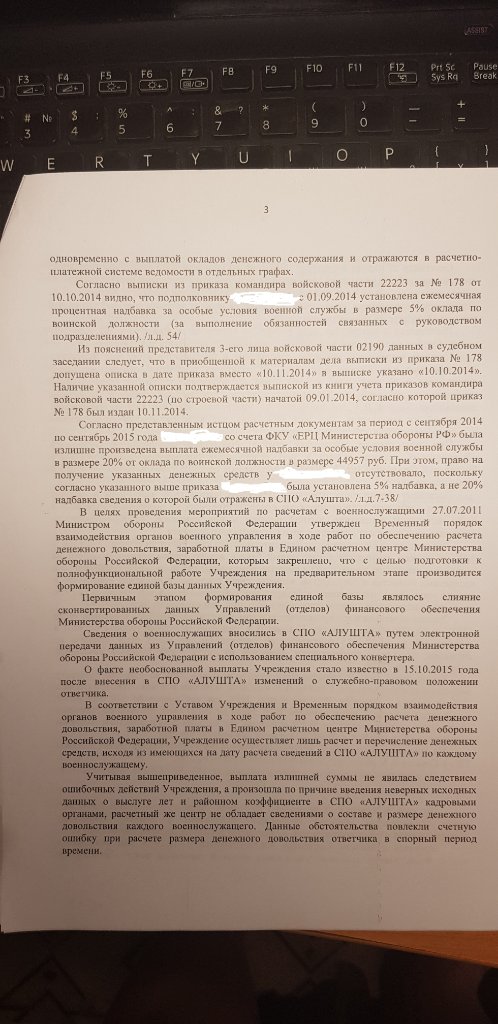 #4622[ref]step_a[/ref], Cуд может что угодно применить исходя из своего внутреннего убеждения. Мой пример -24.11.2013 исключен из списков. 27.03.2014 суд отменил приказ об исключении из списков, решение вступило в силу больше чем через месяц. 01.09.2014 зачислен в списки части приказом от 16.10.2014. ДД получил не одновременно, а в последствии. Суд принял решение взыскать пенсию не с даты решения суда об отмене приказа об исключении, а полностью с даты исключения из списков части, т.е. по мнению суда я должен был после исключения из списков части сообщить военкомату, что буду оспаривать в суде незаконное исключение, чтобы при назначении пенсии они ее не вздумали мне выплачивать, хотя таких намерений у меня до Нового года не было, созрел только после боя курантов.