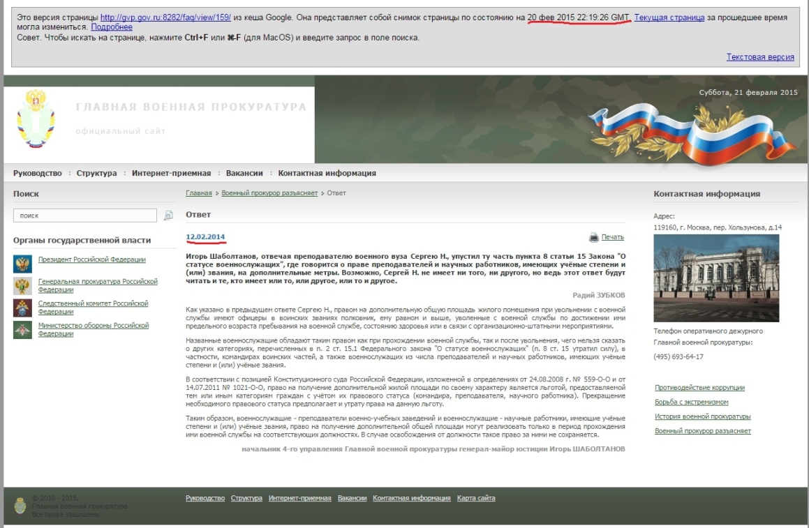 Мной и моим представителем в суде, принято решение предоставить доказательства по гр.делу Высоцкого В.Н. ДЕЛО № 2-85/2015, которое было аналогичное, рассматривалось параллельно одним судьей для заявления своих прав согласно статье 392 ГПК. Эти доказательства еще не заявлены и будут в моих интересах заявлены в 12.00 07.05.2015 в зале 94 ГВ суда. Проблема известная, предмет - право военнослужащего-гражданина, дело открытое, дело каждого принять правильные выводы.