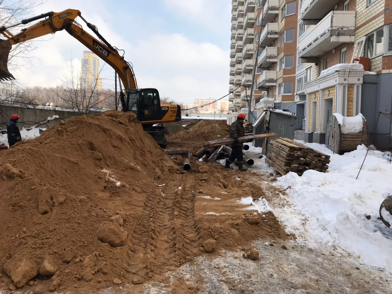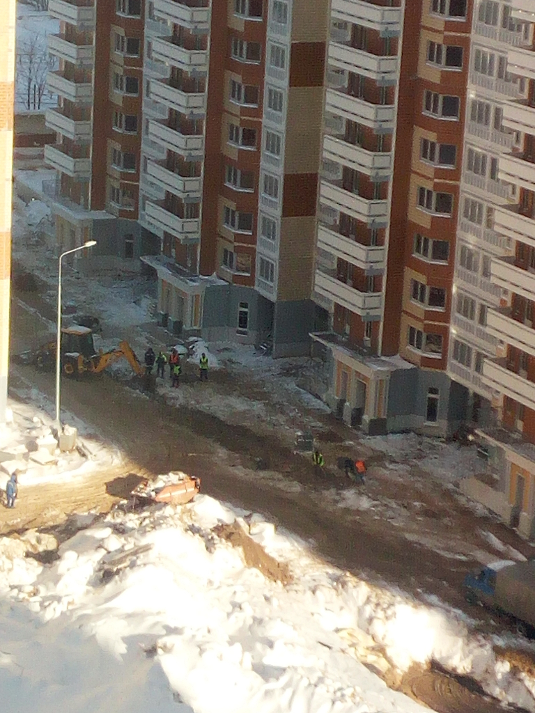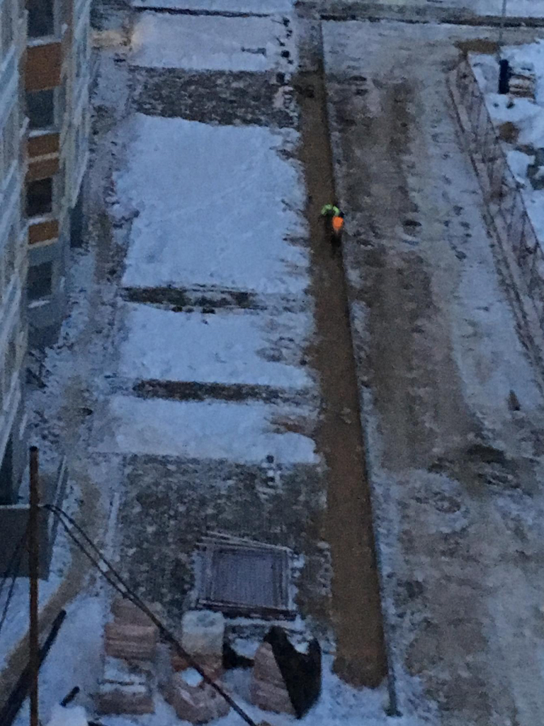 во дворе 7к и 8к порядка 40 человек, часть на ТэПэшках работают, часть на территории, у 1-4 секци зацементировали бордюрный камень, приступили к отсыпке дорожки вдоль корпуса, начали рыть траншею под кабель от угла 8к в сторону 9к.