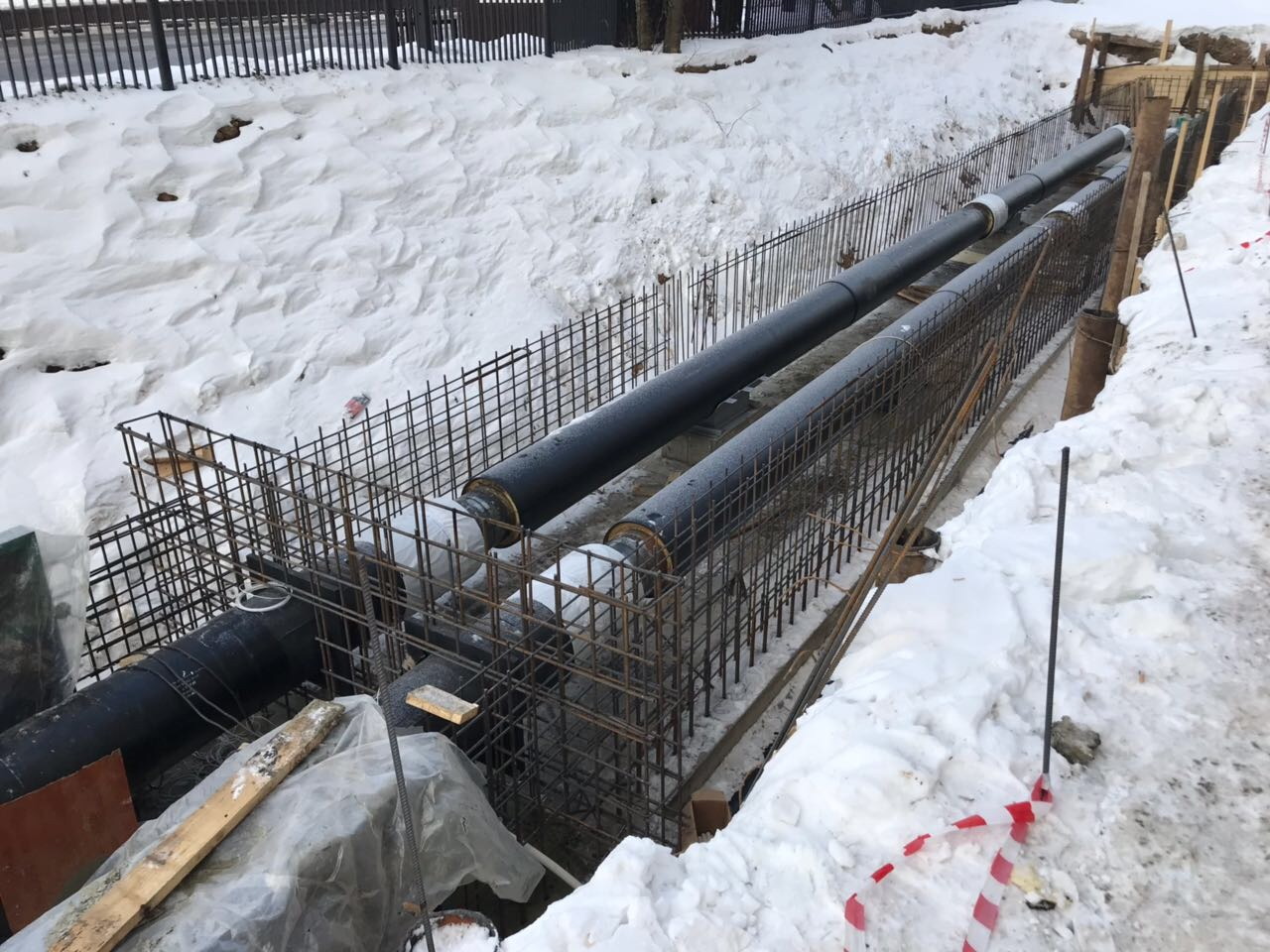 Между корпусами 4-7-8 видны спецы на теплотрассе.